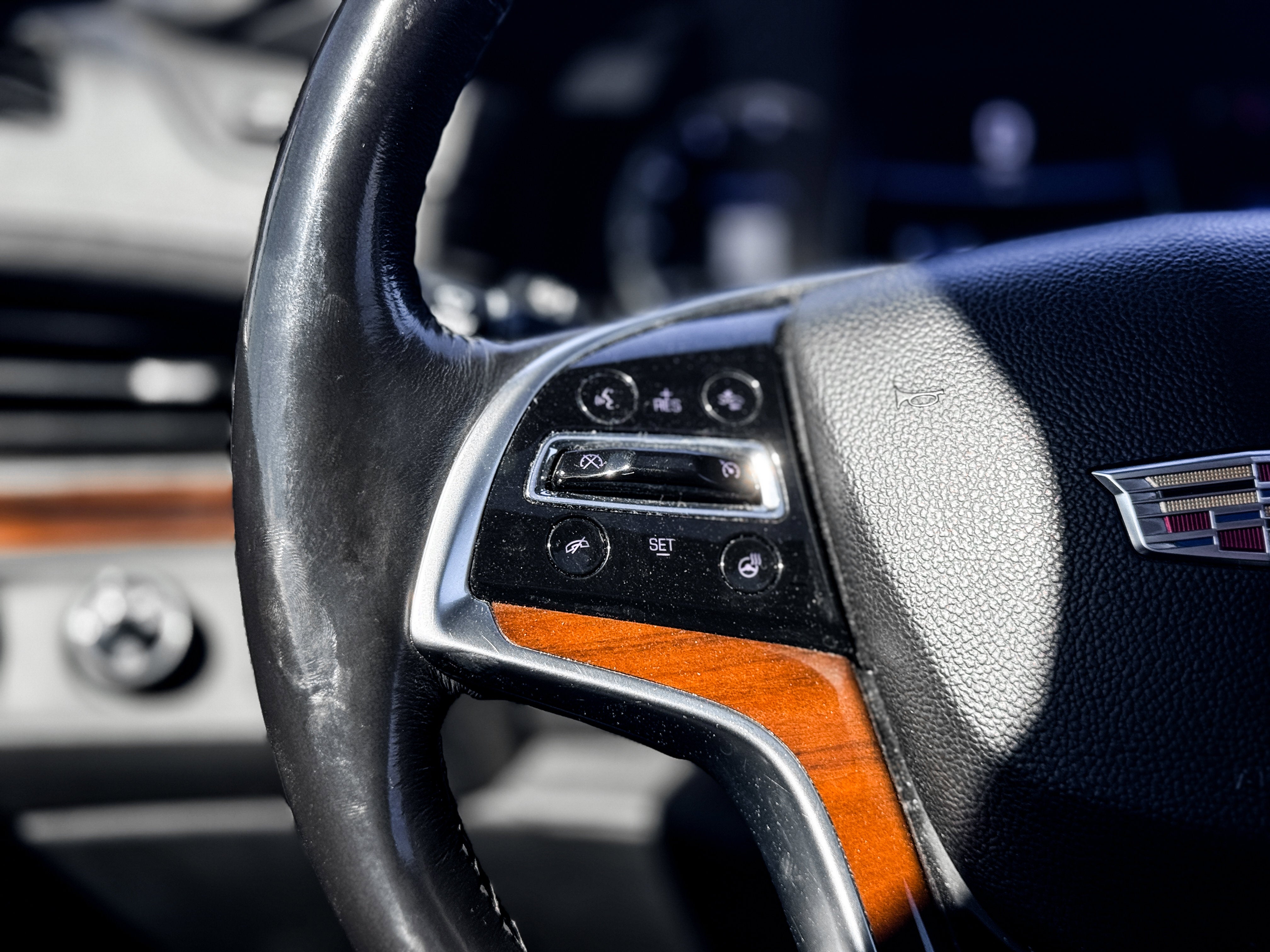 - Cadillac user experience with embedded navigation AM/FM stereo with 8" diagonal color information display featuring touch response, haptic feedback, gesture recognition, Natural Voice Recognition, Phone Integration for Apple CarPlay and Android Auto capability for compatible phone, Collection and Teen Driver. Five USB ports, including one in the articulating storage door/bin and auxiliary audio port