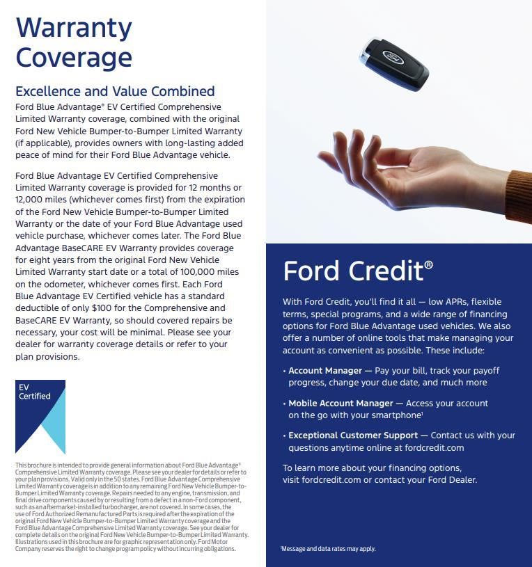 BaseCARE EV Limited Warranty Coverage 8 Years or 100,000 Miles from original Ford New Warranty Start Date