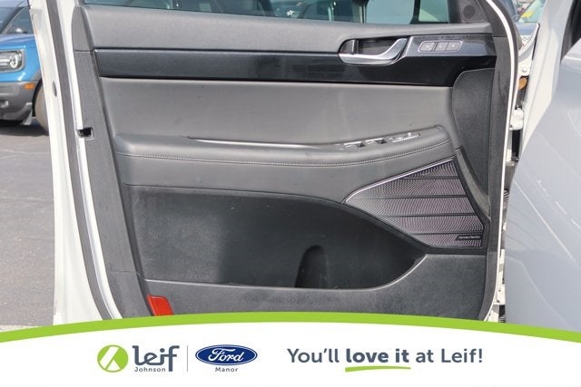 - Radio: AM/FM/MP3 Premium Audio System -inc: 10.25" display screen, Apple CarPlay and Android Auto, Bluetooth hands-free w/wireless audio streaming, steering wheel audio and phone controls, dual front USB ports, SiriusXM, HD Radio, Blue Link connected car system, 12 speakers including subwoofer, external amplifier, Clari-Fi music restoration technology, QuantumLogic surround, navigation system, rear seat quiet mode and driver talk in-car intercom