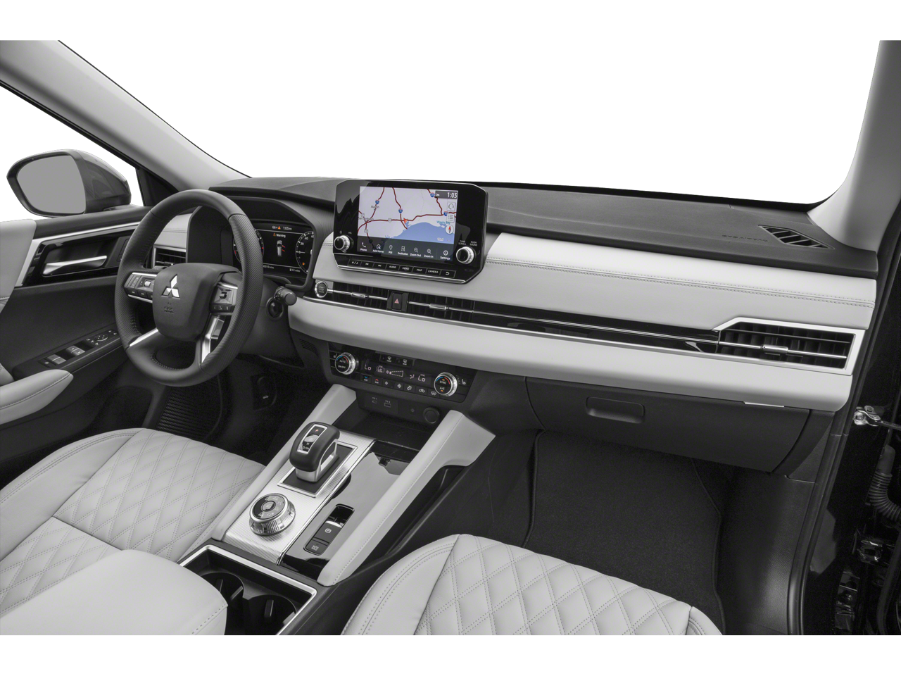 • Radio: AM/FM 9.0" Navigation w/Smartphone Link -inc: 6 speakers, Apple CarPlay, Google Android Auto, SXM all-access and SXM traffic and travel link w/90-day subscription, Mitsubishi Connect, HD Radio, smartphone wireless charger, Bluetooth® wireless technology, steering wheel controls for phone, audio and voice recognition and USB ports